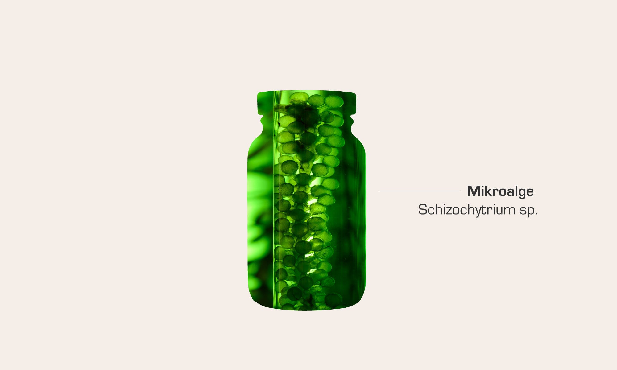 Die Alge wird umwelt- und ressourcenschonend in den USA an Land gezüchtet. Das Algenöl wird schonend verarbeitet und in Kapseln gefüllt. Diese bestehen aus pflanzlicher Maisstärke anstelle tierischer Gelatine. Die Kapseln füllen wir in Deutschland vorsichtig in einer Braunglasflasche, anstelle der sonst üblichen Plastikflasche oder Blisterverpackung ab.