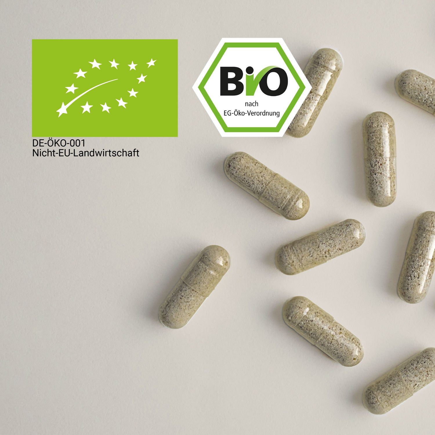 Das heißt, wir verwenden keine Zusatzstoffe. Nur die natürlichen Zutaten und die Kapselhülle aus Cellulose.