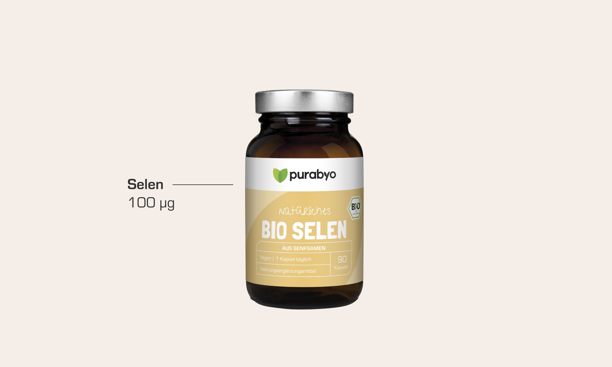 Unser Produkt enthält Selen aus kontrolliert-biologischer Bio Senfsaat. Die darin enthaltenen Selen-Komponenten sind ausgedrückt als Selendioxid.