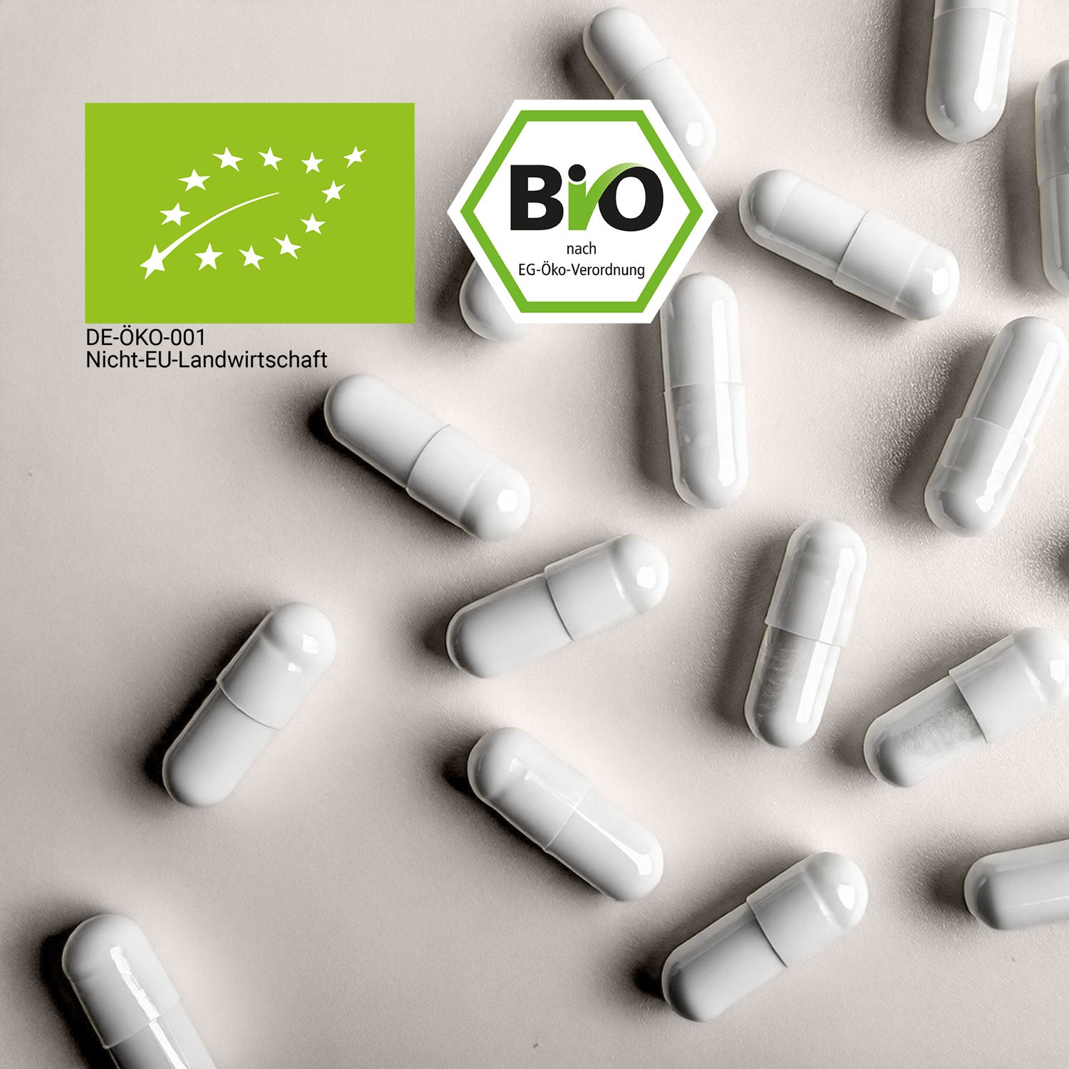 Das Ergebnis: Ein 4:1 Extrakt mit Bio-Zertifizierung, vegan und naturbelassen. Bio-Reismehl ist die einzige weitere Zutat, die als Füllstoff in unsere Kapsel kommt.