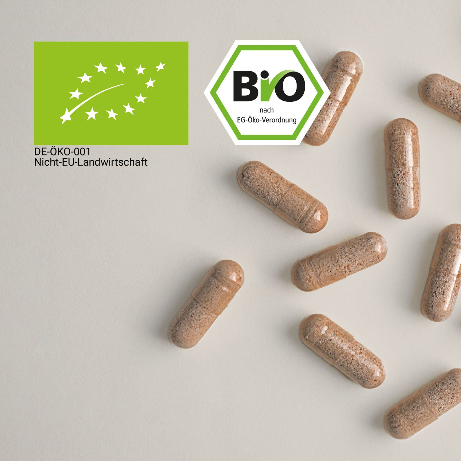 Das heißt, wir verwenden keine Zusatzstoffe. Nur die natürlichen Zutaten und die Kapselhülle aus Cellulose.
