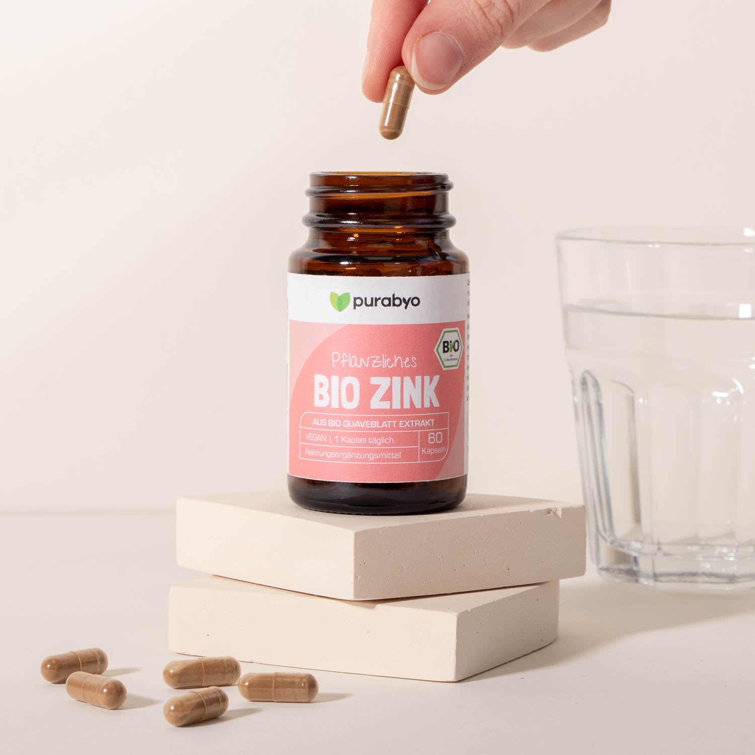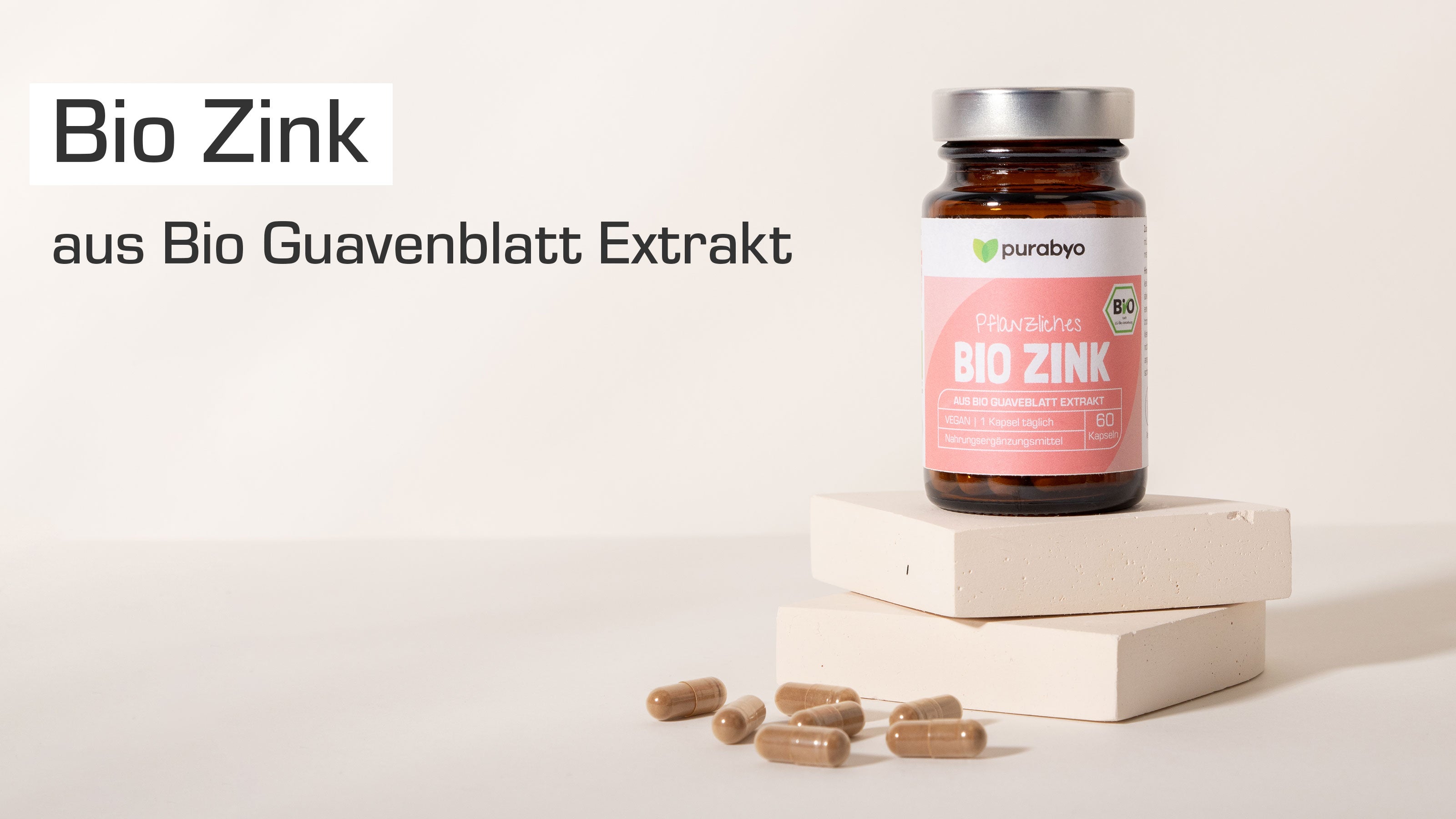 Der Rohstoff im Purabyo Zink stammt aus indischen Guavenpflanzen, die in kontrolliert-biologischer Landwirtschaft angebaut werden. Aus ihnen gewinnen wir ein Extrakt, das dich mit 100% der empfohlenen, täglichen Menge an Zink versorgt. Rein pflanzlich, in Bio-Qualität und mit höchster Bioverfügbarkeit!