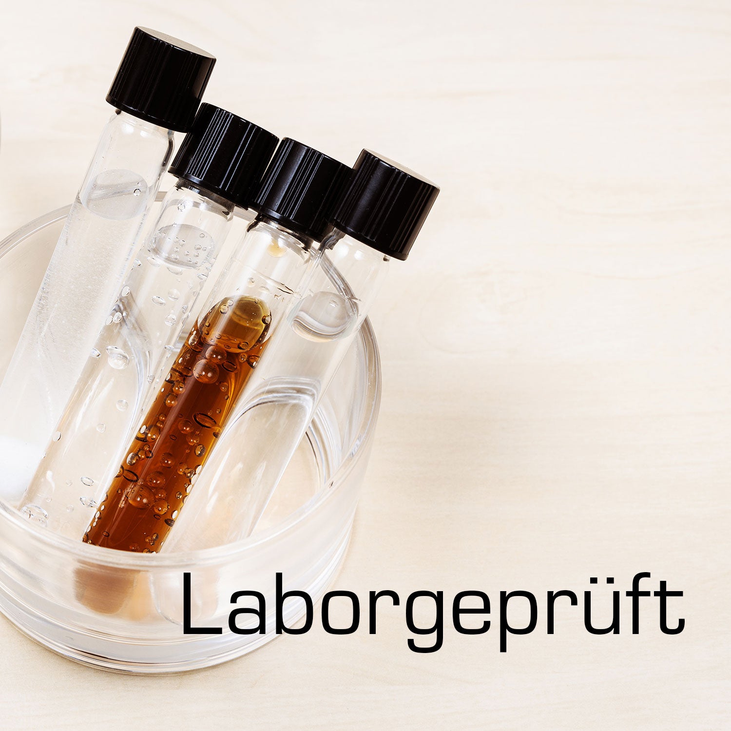 Unsere Produkte werden in Deutschland unter höchsten Standards abgefüllt und jede Charge wird in einem unabhängigen Labor auf Wirkstoffgehalt, Mikrobiologie und ggf. Schwermetalle geprüft. Die Rohstoffe stammen – wann immer möglich – aus kontrolliert-biologischem Anbau.